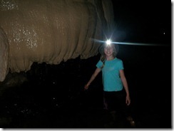 Pointing at the bats. I was surprised by the beuaty of the cave. I wan't expecting cave formations like stalactites etc.